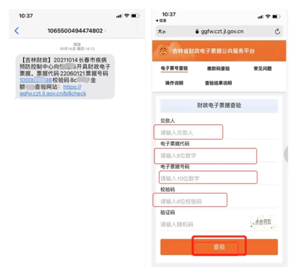 6.缴费成功后,手机会接收到短信通知,按照短信的内容,去查验网址查询相关电子票信息,并进行下载操作